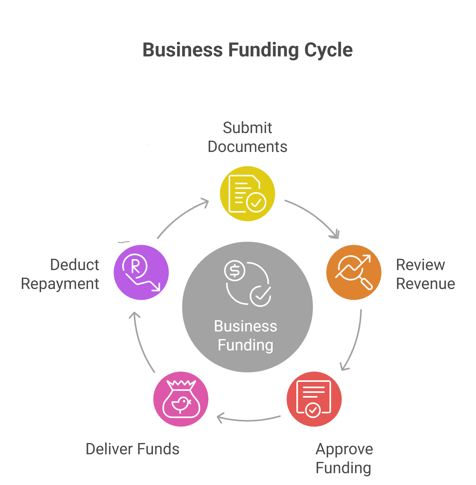 Instead of fixed monthly payments, repayment is collected as a percentage of daily or weekly sales. The financing provider purchases future receivables rather than issuing a conventional loan.